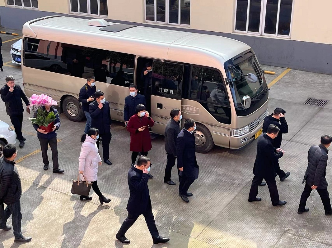 2022年2月(yuè)10日上午11時許(xǔ),泰州市硬汉视频區區委(wěi)書記孫群書記等領導一行來到我司進行走(zǒu)訪調研,針對(duì)我司(sī)年度發展規劃提出指導性意見,我司董事長丁克芳(fāng)先生及董事會(huì)成員陪同視察!